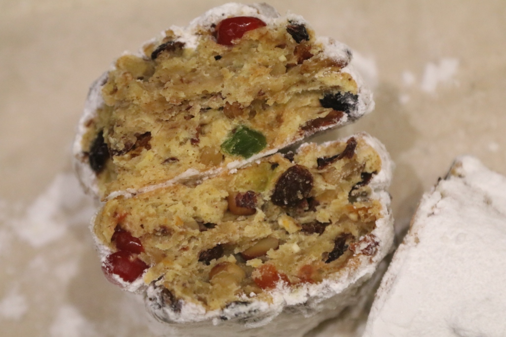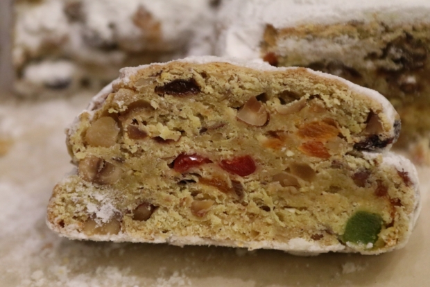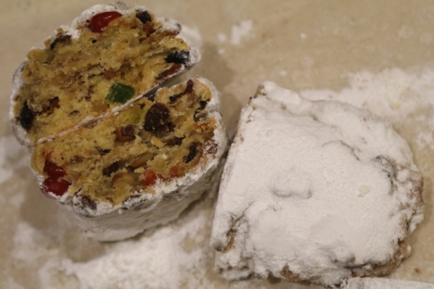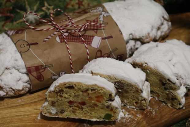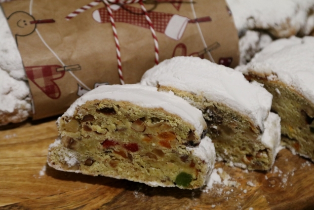 Один штоллен мы отложили до Нового года, а второй (кто б сомневался) съели. Благодаря этому можно было сделать нужные фото)
