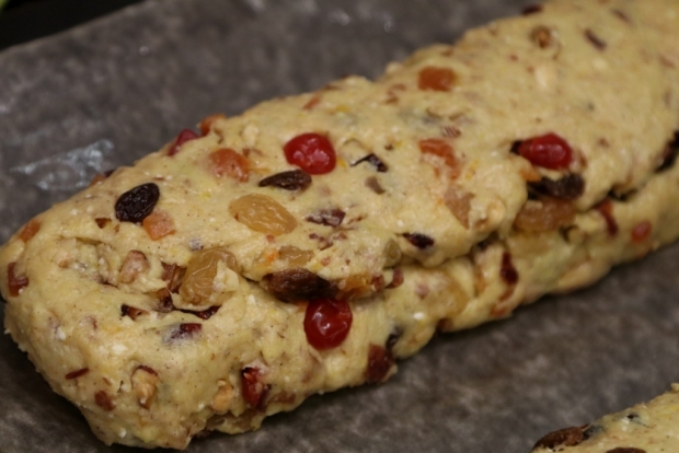 На выпечку штоллена у Вас уйдет два дня. В первый день нужно залить сухофрукты ромом и оставить их настаиваться в течение суток.