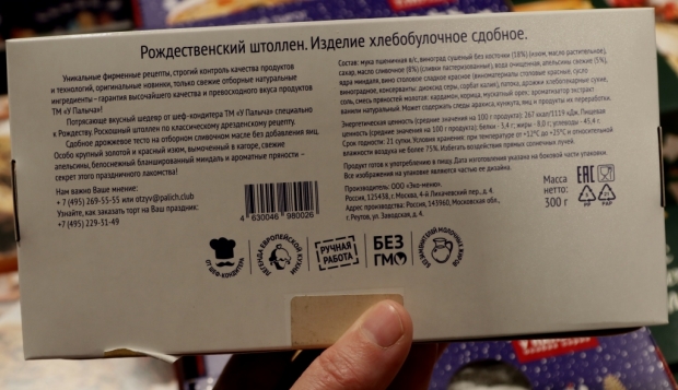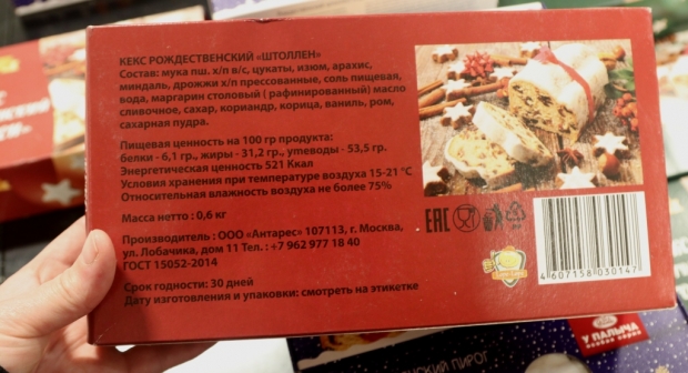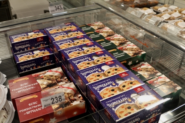 Штоллен можно купить в магазине. Правда получится не очень дешево. Например, на прилавках России штоллен массой 0,3-0,6 кг грамм будет стоить 250-350 рублей. Это очень маленький штоллен, потому что сдобное тесто, используемое в нем, достаточно тяжелое.