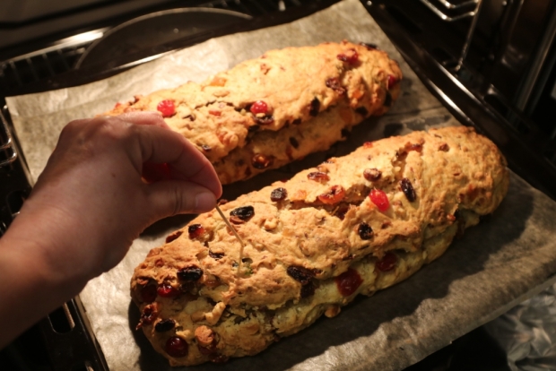 После остывания нужно штоллен брать аккуратно, иначе он может переломаться на две половинки под собственным весом.